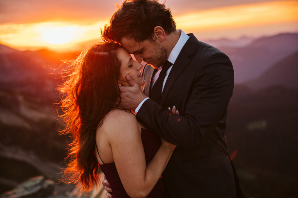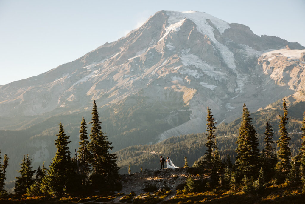 If you’re torn between sunrise and sunset, take a look at this sunset elopement at Mount Rainier to see how golden hour and alpenglow transform the landscape.